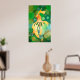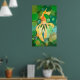 Vermilion Goldfish Swimming In Green Bubbles Poster