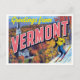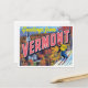Embrace the beauty of the Green Mountain State with this stunning retro "Greetings from Vermont" postcard. This classic large-letter design showcases the vibrant fall foliage, a skier enjoying the slopes (evoking winter sports), and a quintessential New England white-steeple church. The vintage artwork captures the year-round charm of Vermont. Perfect for residents, tourists, skiers, fall lovers, and collectors of Americana state souvenirs and New England travel art.