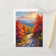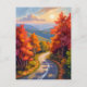 Vermont Fall Foliage Autumn Winding Road Watercolor Landscape Postcard