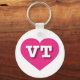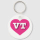 This keychain features a vibrant hot pink heart containing the bold, white, upper case letters VT, the official abbreviation for Vermont, the green mountain state.