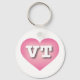 This key chain features a pink heart with a white-washed centre containing the bold, white, upper case letters VT, the official abbreviation for Vermont, the green mountain state.