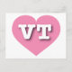 This card features a cool, pink heart containing the bold, white, upper case letters VT, the official abbreviation for Vermont, the green mountain state. The reverse side of the postcard is blank, awaiting your customised text or handwritten sentiments.