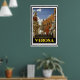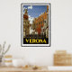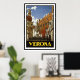 Beautiful vintage style poster of Verona, Italy as viewed from street level with statues and dramatic steeples and towers. This poster of Verona is available in many sizes and paper types.