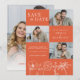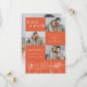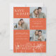 This Verona Sunset Elegant Orange Floral Four Photo Wedding Save the Date Invitation showcases four of the couple's photos, with delicate line art flowers on a vibrant orange background, complemented by contemporary typography and script calligraphy. It is fully customisable with the couple's names, wedding details, and photos of your choice. The formal design and wording will add a touch of elegance to your wedding celebration. The back photo has a white gradient at the bottom, so the couple's names will show up over any photo.
