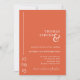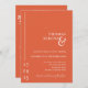 This sleek and minimalist wedding invitation is designed with contemporary elegance in mind. It features a bold verona sunset orange colour scheme, offering a striking yet timeless look blending clean lines with a touch of glamour. Add the URL of your wedding website which will update the QR code, (or delete it if not required). The design also includes a customisable timeline of events, complete with adjustable icons to suit your unique celebration.