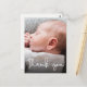 Create a heartfelt and personalised thank you birth announcement postcard for your baby shower. Customise the front with a precious photo of your baby, capturing a special moment. On the back, include messages of gratitude, the parents' names, the baby's name, birth stats, and the return address.
