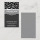A business card template with an attractive vertical banded design in shades of grey and white with a decorative image texture area at the top. Company name and business type on the main band with Name, title and other address and contact details below, The reverse side of the card has been left blank with a mid grey flat colour. This can be left blank or further customised.