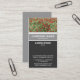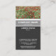 A business card template with an attractive vertical banded design in shades of grey and white with a decorative image texture area at the top. Company name and business type on the main band with Name, title and other address and contact details below, The reverse side of the card has been left blank with a mid grey flat colour. This can be left blank or further customised.