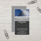 A business card template with an attractive vertical banded design in shades of grey and white with a decorative image texture area at the top. Company name and business type on the main band with Name, title and other address and contact details below, The reverse side of the card has been left blank with a mid grey flat colour. This can be left blank or further customised.