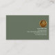 Overleaf, in a dark green cover, details are at the right wall of the card. The gold logo is at the top followed by your prestigious name, contact details and a slogan caption to publicize your services.