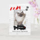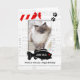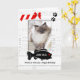 Add your vertical or portrait orientated cat's photo to this adorable card from the pet, featuring red, white and black with a toy mouse, food bowl and a fish shaped I.D. tag where you put your kitty's name. Cute message inside is fully customisable for you to write your own message, suitable for birthdays or any occasion when Mum or Dad need a card from their favourite furry feline.