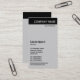 A vertical business card template with a black header. All details on the front with the back left blank, which can be left as is or further customised. The design also allows plenty of space for the addition of other elements e.g. a logo.