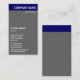 A vertical business card template with a dark blue header. All details on the front with the back left blank, which can be left as is or further customised. The design also allows plenty of space for the addition of other elements e.g. a logo.