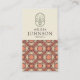 Stand out from the crowd with this stylish vertical business card. Featuring a chic Mid-Century Modern pattern in earthy terracotta and cream, this portrait-oriented design offers a fresh, contemporary look for Interior Designers, Fashion Stylists, and Creative Professionals.