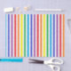 Abstract digital art of stripes, the colours of the rainbow and white vertical stripes.