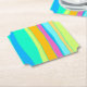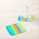 This coaster features cheerful and vibrant colours like fuchsia, orange, green, blue and turquoise, arranged in vertical irregular lines of different thickness.