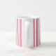 Simple yet stylish Vertical Stripes patterned mug in pink. This design is a great choice for someone wanting something simple but bold and vibrantly coloured. Text may be added to this design to give it a more personal touch.