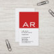 Vertical Trendy Red White Monogram Stylish Business Card