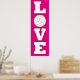 Vertical Volleyball Love Custom Colour Poster: A bold and beautiful poster for volleyball players and fans! You can set the background colour (currently set on bright pink) to any colour you want by clicking the "Customise" button and then clicking the little eyedropper symbol to see the full range of colours. These make awesome decorations for a volleyball player's bedroom, dorm room or game room!