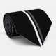 A simple yet bold necktie featuring thin white and dark grey vertical stripes on black. A perfect tie for an interview, graduation, wedding or even a party...a perfect tie for any occasion.