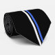 A simple yet bold necktie featuring thin white and royal blue vertical stripes on black. A perfect tie for an interview, graduation, wedding or even a party...a perfect tie for any occasion.