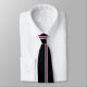 A simple yet bold necktie featuring thin white and hot pink vertical stripes on black. A perfect tie for an interview, graduation, wedding or even a party...a perfect tie for any occasion.