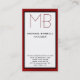 Vertical white red border monogram business card