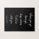 Have fun for hours putting this very challenging Bible verse puzzle together. This features a scripture from the Book of Isaiah, "When you go through deep waters, I will be with you". It is written in white cursive font on a black background. Order yours today!