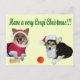 This Postcard features two of our Country Corgi pups, Mercy and Gimli, on a light yellow background, wearing “Santa” accessories. A red ball and a dog biscuit complete the design along with the words, “Have a Very Corgi Christmas” across the top.