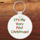 Red and green kid style text reads "It's My Very First Christmas!" on holiday tote bags, bodysuits, and Tshirts for babies who are celebrating their very first Christmas!