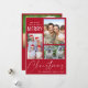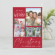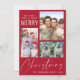 Modern red holiday greeting card featuring a 3 picture photo collage, "We Wish You A Very Merry Christmas" in mix of simple white typography and an elegant white script, and your name and the year. Add a 4th photo and your personalised message and first names on the back.