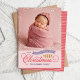 Affordable custom printed holiday photo cards with a simple DIY template for customisation. This colourful design features whimsical typography in pink, gold and mauve colours. The message read "Wishing You a Very Merry Christmas". Add your family photo at the top with a subtle snowy overlay border. Use the design tools to edit the fonts and colours. Reverse side has a coordinating stripe pattern or use the space to add more photos and text.