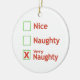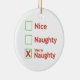 Three green check boxes with the words Nice, Naughty and Very Naughty in red text next to them, the box for Very Naughty has been checked with an "X" oops sorry Santa!