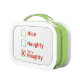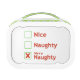 Three green check boxes with the words Nice, Naughty and Very Naughty in red text next to them, the box for Very Naughty has been checked with an "X" oops sorry Santa!