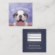 Pet Bathing and Grooming / Pet Care / Pet Sitting / Pet Grooming / Pet Food Shop / Pet Beauty Salon / Animal Hospital / Animal Clinic Personalised Appointment Business Cards Template - Adorable Cute Cartoon Low Poly Dog on Very Peri Purple Colour Background.