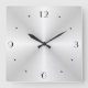 A very plain silver wall clock with black numerals and silver/black hands. Simpistic and minimal, this clock would suit the kitchen or lounge area.