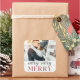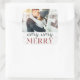 Very very merry typography with photo and muted winter holiday botanical background Christmas sticker.