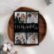Modern and elegant multi photo holiday card for the newlyweds celebrating their first Christmas together as husband and wife featuring a typography text that says "a very wedded holiday." The background is black.