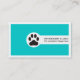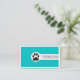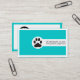Vet/Veterinary Clinic, paw minimalist business cards black, turquoise blue, white, featuring a black paw on a white circle. Turquoise blue background with white borders. A great, feminine design for veterinarians or pet clinic/hospital services.