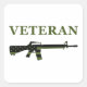 Sticker with a M16 done in a subdued American flag with the word "Veteran"