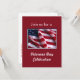 American Flag on a red background with customisable invitation wording on the front. The back, with all of the customisable invitation details, is set over a light American Flag. Perfect invitation for a Veterans Day event! Matching stamp, magnet and other gift and favour items are available by doing a Zazzle search with quotes around "Veterans Day Celebration, Flag on Red"