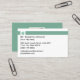 Front: Clean, high-contrast contact layout with clear fields for Name, Title, Address, Phone, Email, and Website. Features the signature Mint Green accent stripe.