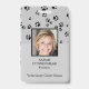 Badge, for a veterinarian clinic. . Black and Grey Paw Print Background. Photo, Name, Clinic Name, position.