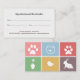 This appointment card will help you in your business to reminder to your customer their next appointment. It could be suitable for all pet services such as veterinarian, dog walker, cat sitting, rabbit feeding, fish care, bird care, plant watering, pet boarding, etc. The back comes with coloured squares and images of cat paw, dog paw, fishbowl, potted plant, bird and rabbit - you can change them with your own photos, logos or images