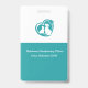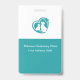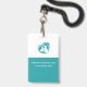 Medical veterinary theme office staff name badges in a budget friendly editable design. Presented with lanyard and double side design in teal and white with a dog and cat logo you can use or replace.