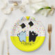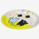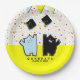 Creative graduation party or grad gift plates featuring cool cat-themed design for veterinarian grad or graduate from a school with a cat mascot.