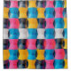 A bold and modern 3D geometric pattern shower curtain featuring repeating hourglass shapes in vibrant yellow, blue, pink, and white. With deep shading and high contrast, it creates a dynamic illusion of texture and movement.