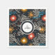 Immerse yourself in a dynamic fusion of colour and form with this abstract floral table napkin. Featuring stylised flowers in vivid red, orange, and yellow hues, complemented by flowing wavy lines and scattered blue and white dots, all set against a deep black background, this table napkin exudes a bold and energetic aesthetic. The interplay of vibrant elements creates a striking contrast, making it an ideal choice for those seeking a unique and artistic touch. This table napkin appeals to lovers of modern botanical art and abstract expression.