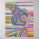 This bold abstract design features layered geometric shapes outlined in vivid colours, flowing seamlessly across a striped multicolor background. Bright shades of blue, pink, yellow, orange, green, and purple create a lively rhythm, while concentric lines and angular forms add depth and movement. The combination of organic curves and sharp edges gives the piece a modern, energetic feel perfect for those drawn to colourful contemporary patterns.