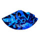 The hat is primarily black, adorned with swirling patterns of deep blue and turquoise, reminiscent of a starry night sky. Scattered across the design are sparkling silver stars, adding a touch of magic and wonder.
